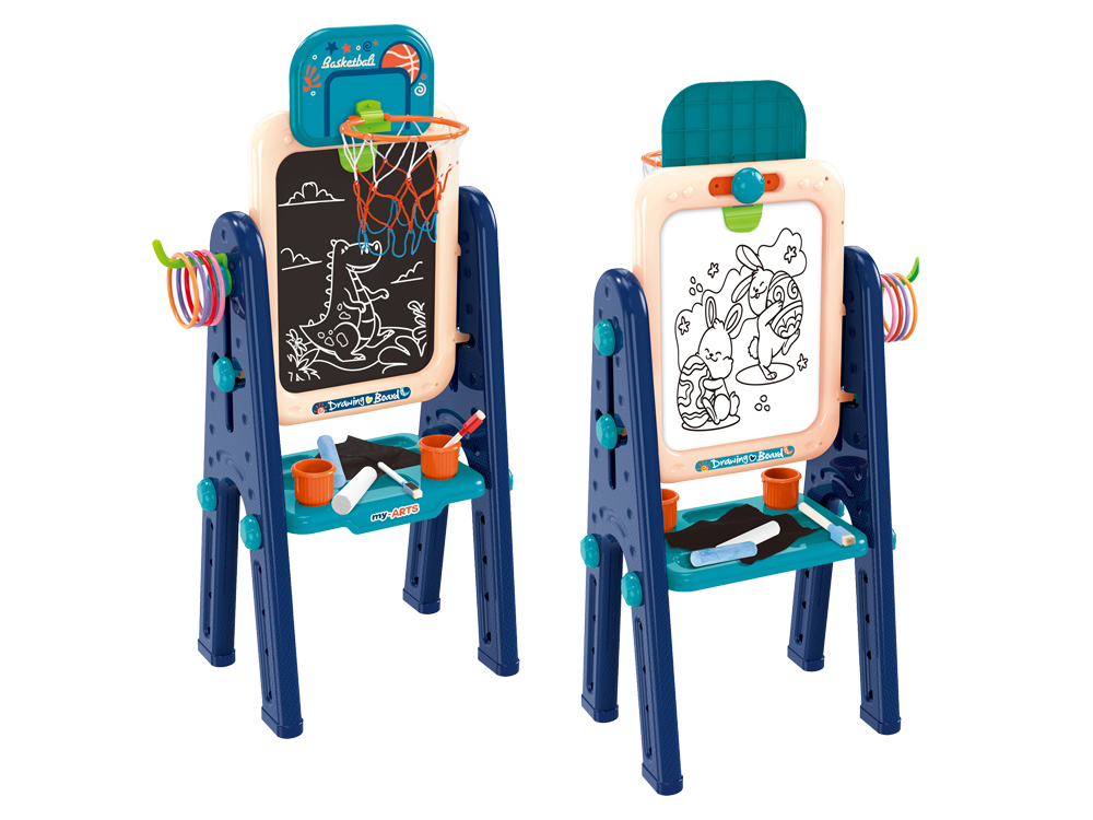 Tableau Double Face Enfant - Réglable et Ludique - Avec Panier de Basket et Lancer d'An...