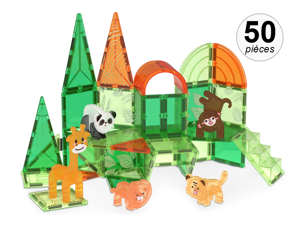 Faites découvrir à votre enfant l'univers fascinant de la jungle avec ce jeu de construction magnétique ! Composé de 50 pièces, il permet de créer des structures variées tout en apprenant à assembler les différentes formes.