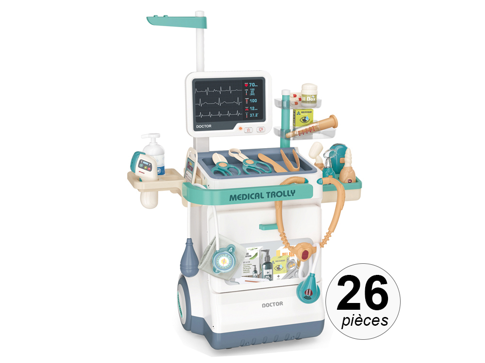 Offrez à votre enfant la possibilité de jouer au docteur avec ce chariot médical complet. Idéal pour stimuler son imagination, ce chariot lui permet de s'improviser médecin tout en apprenant à connaître les instruments utilisés lors des visites médicales.
