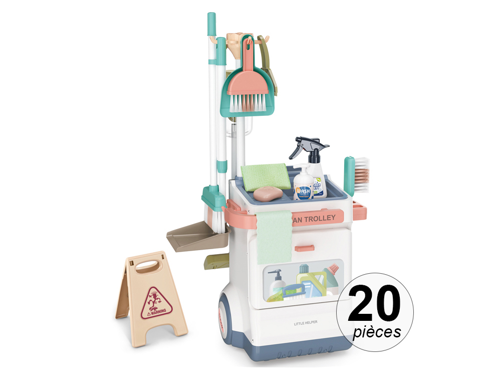 Ce chariot de ménage est livré avec 15 accessoires réalistes pour une expérience complète :