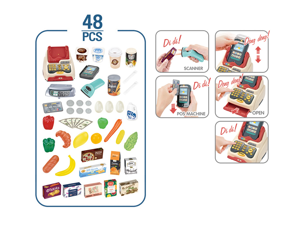 Comptoir de supermarché avec Effets Sonores et Lumineux - Jeu de Marché Interactif pour Enfants - 48 pièces