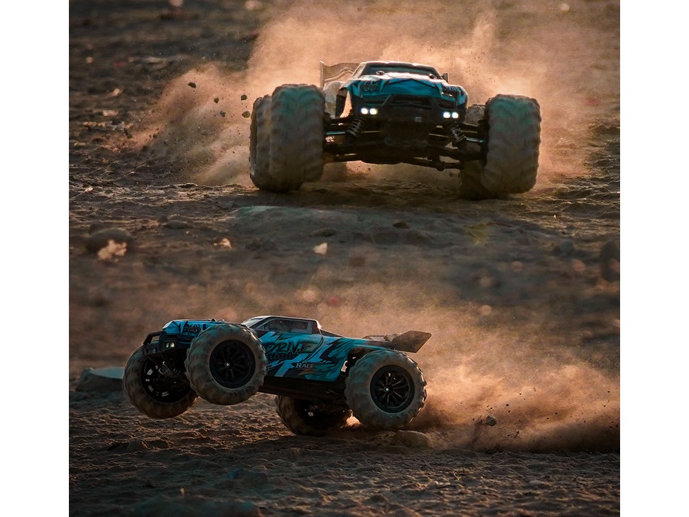 Donnez une nouvelle dimension à vos courses ! Ce monstre à 4 roues motrices offre une vitesse impressionnante de 70 km/h et peut être piloté jusqu'à 150 m de distance. Avec ses suspensions indépendantes, son moteur brushless de dernière génération et son système de transmission en acier, il se lance dans les terrains les plus escarpés. De jour comme de nuit, ses phares LED ajoutent une touche supplémentaire pour vos courses nocturnes.