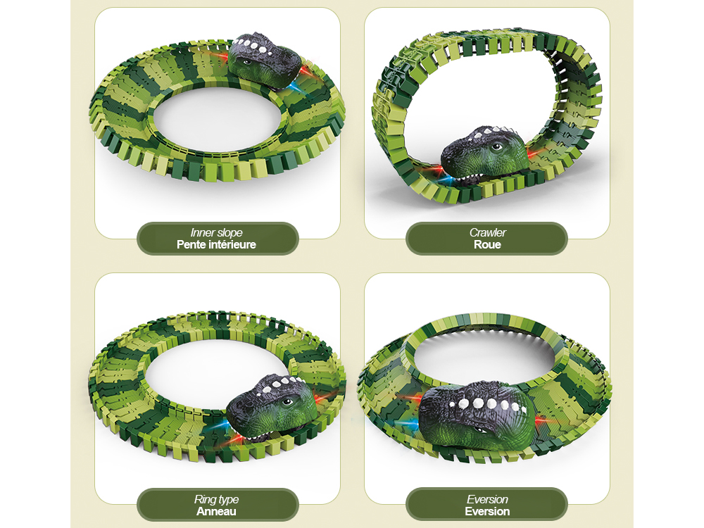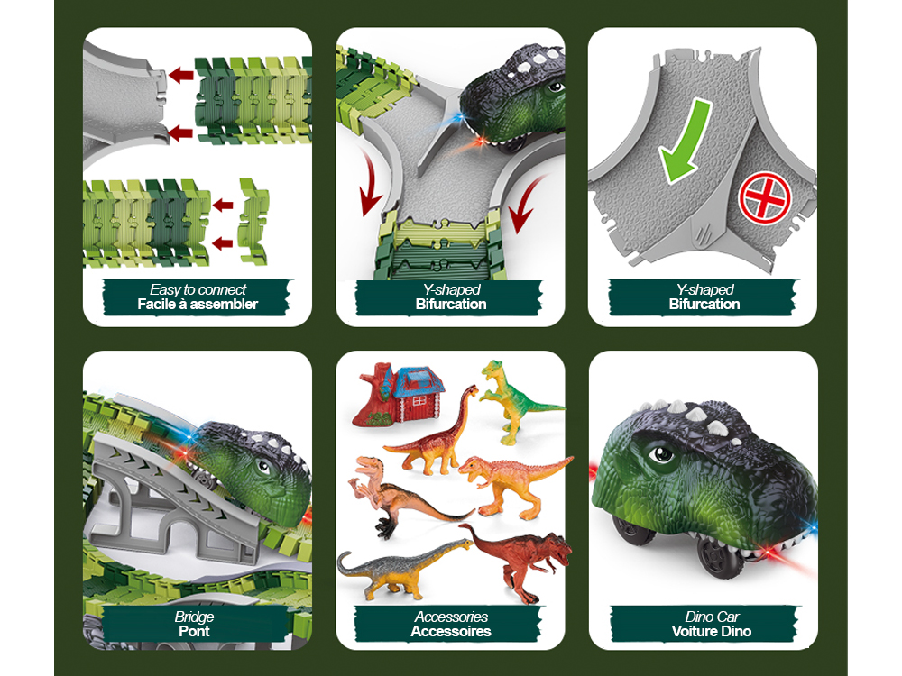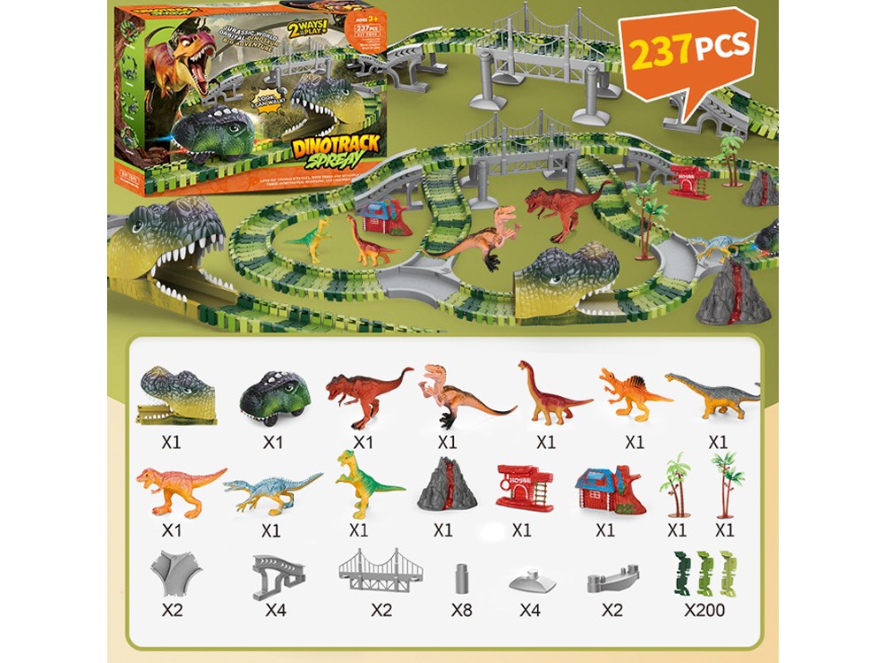 Circuit Électrique modulable - 237 Pièces, Voiture Dino, Personnages et Décorations, Kit de Construction Créatif - 237 Pièces