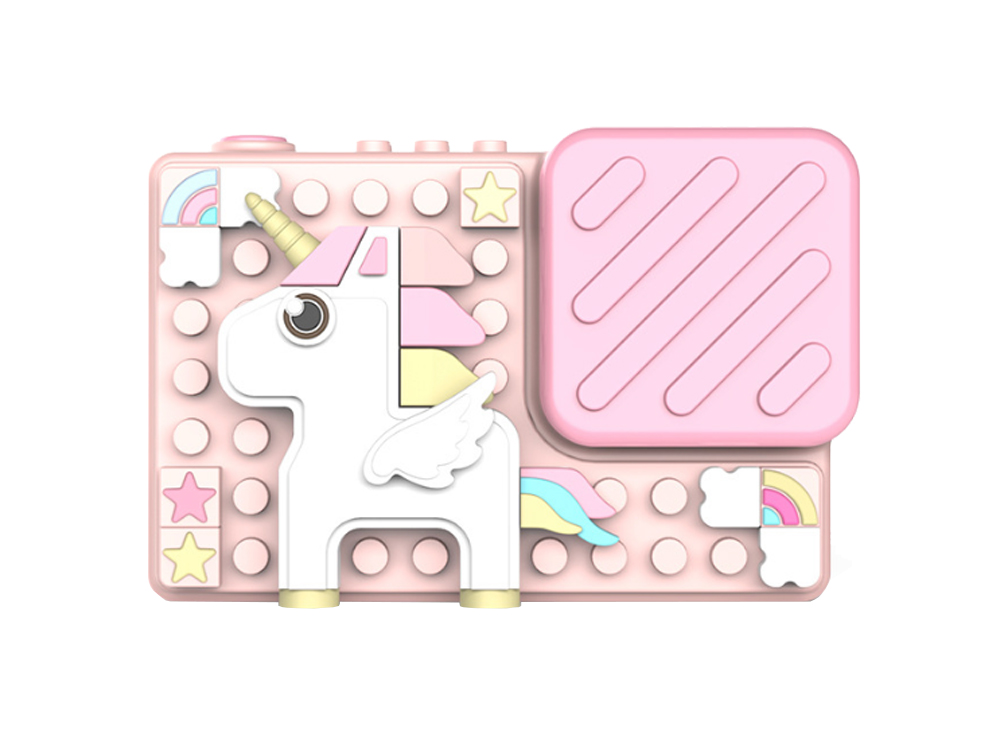 L'écran couleur de 2,4 pouces facilite la navigation à travers les nombreux effets, filtres, réglages et mini-jeux intégrés, rendant chaque session photo encore plus amusante. Ce modèle propose également une personnalisation unique avec un design blocs de construction, permettant aux enfants de customiser l'appareil à leur goût.