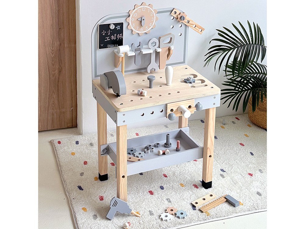 Initiez les petits bricoleurs aux joies du travail manuel avec cet établi en bois premier âge ! Conçu pour développer la motricité fine, la coordination et la curiosité, cet établi ludique comprend de nombreux outils adaptés aux petites mains : clés, scies, perceuses et étaux.
