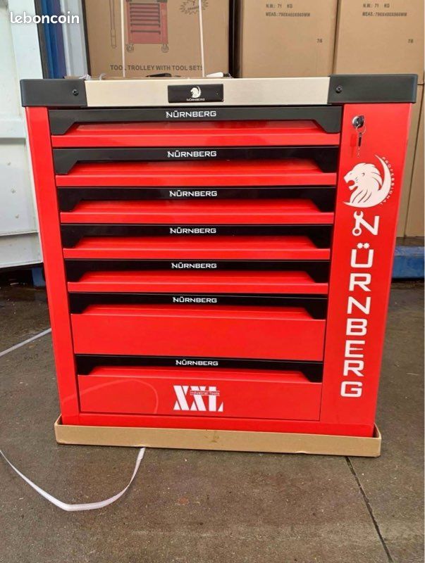Je vends cette servante mécanique de la marque Nürnberg, un outil indispensable pour tout atelier. - Type de produit : Servante mécanique - Marque : Nürnberg - Caractéristiques : Tiroirs verrouillables, plateau en bois, rangement pour outils N'hésitez pas à me contacter pour plus d'informations. Quantité illimité
