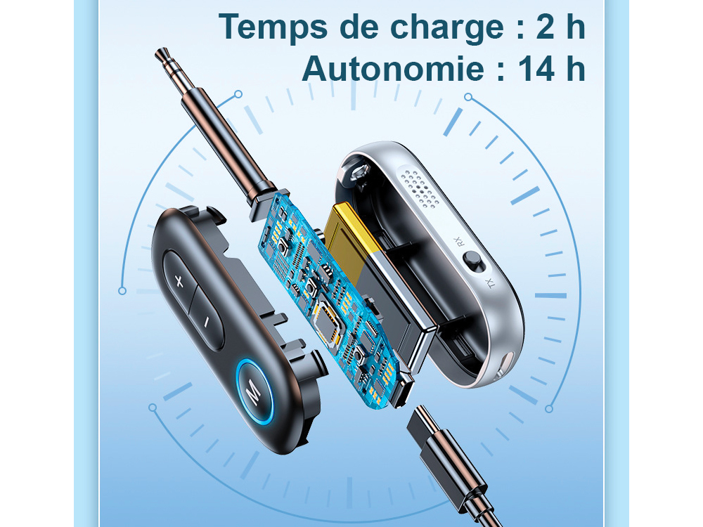 Module Audio Bluetooth 5.3 - Émetteur et Récepteur Sans Fil, Autonomie 14 h, USB-C