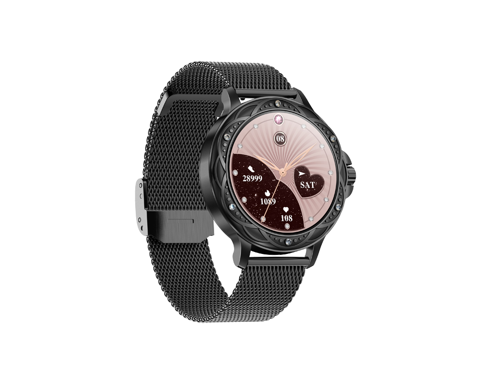 Cette montre connectée allie élégance et technologie avancée, avec un boîtier orné de strass et un design floral délicat. Idéale pour les femmes modernes, elle combine un look raffiné avec des fonctionnalités pratiques, telles que la gestion des appels et un assistant vocal intégré, vous permettant d'accéder à vos informations essentielles en toute simplicité.