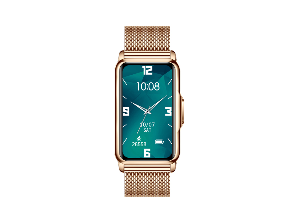 Son bracelet en acier inoxydable type milanais est ajustable pour un confort optimal, tandis que son design raffiné la rend idéale pour un usage quotidien. Grâce à sa batterie de 180 mAh, cette montre garantit une autonomie de 5 à 7 jours en fonction de l'utilisation.