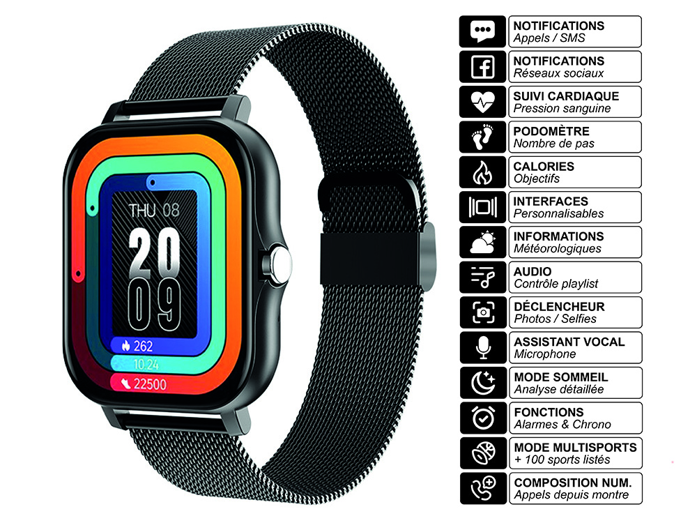 1 montre connectée avec bracelet milanais