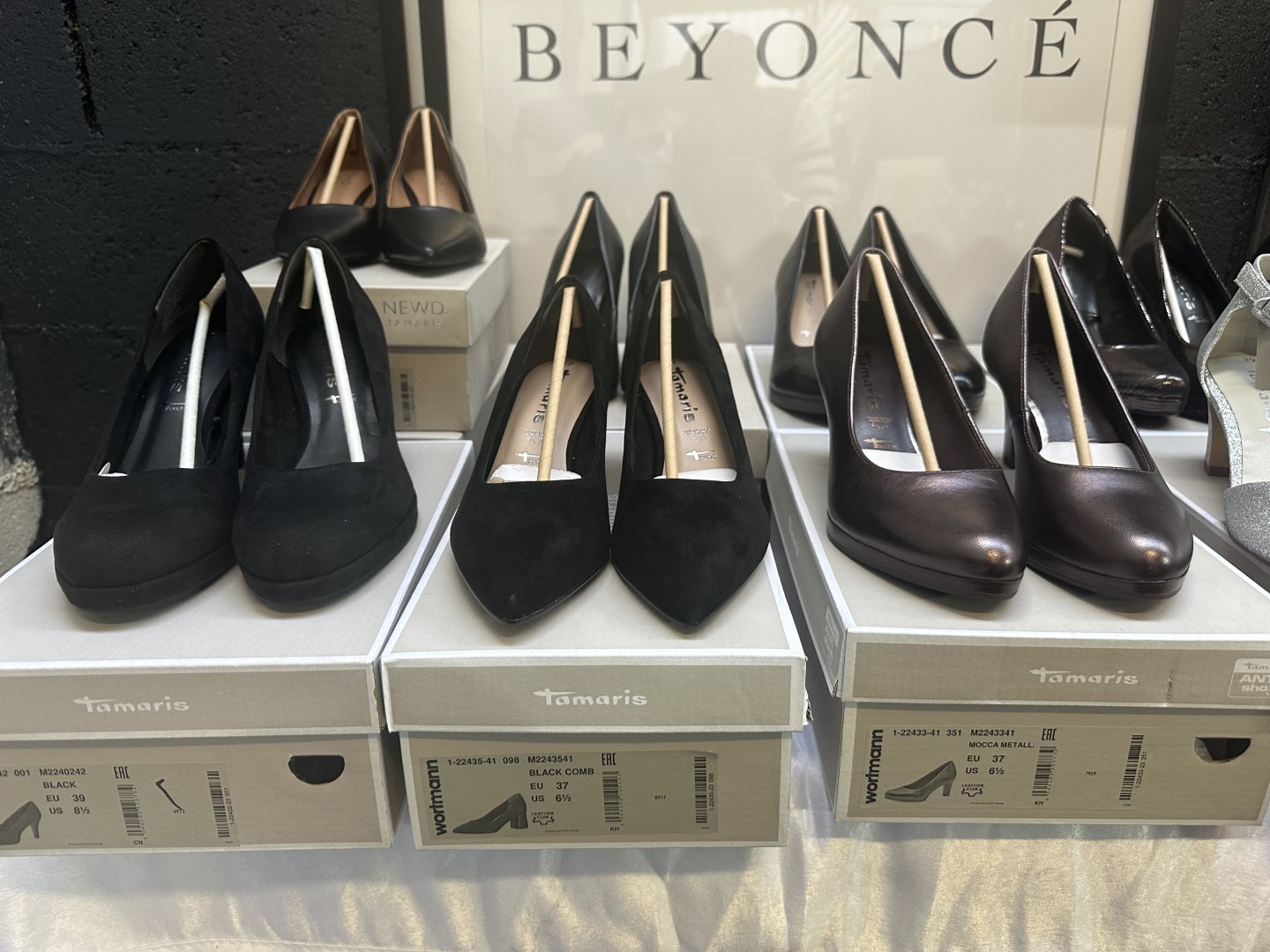75 paires Chaussures tamaris différent model avec leur taille possible de venir sur place model 2024/2025 pour plus d'information contacter moi via what app 07/56/89/89/50 merci