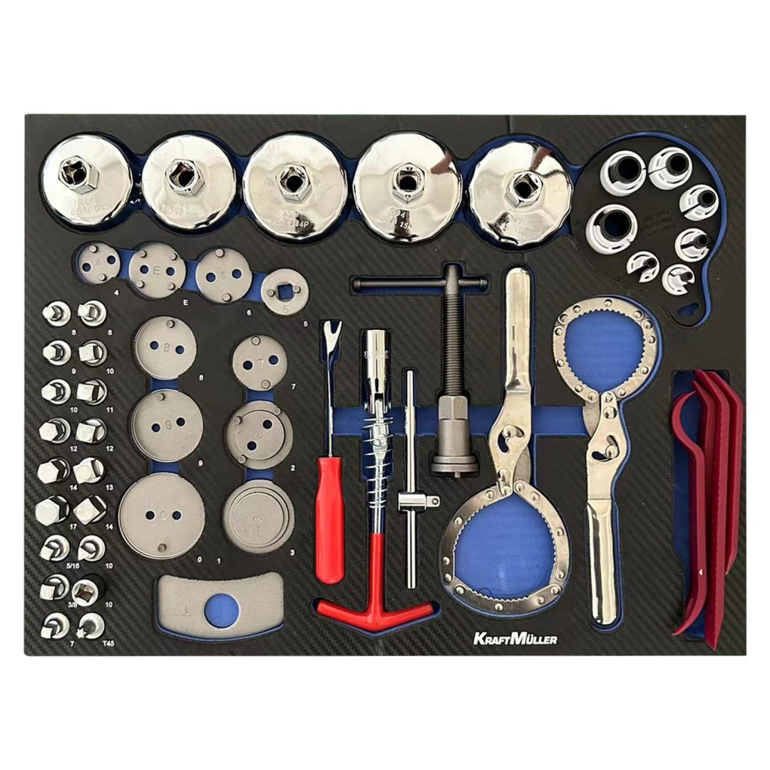 Tiroir 7 : assortiment de repousse piston, clés à douilles articulées, cloches à filtre à huile.