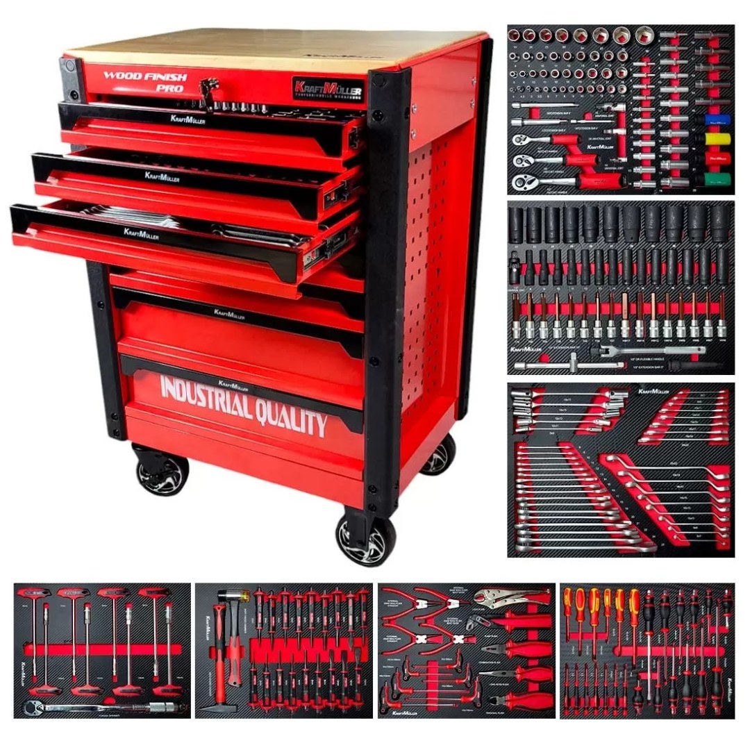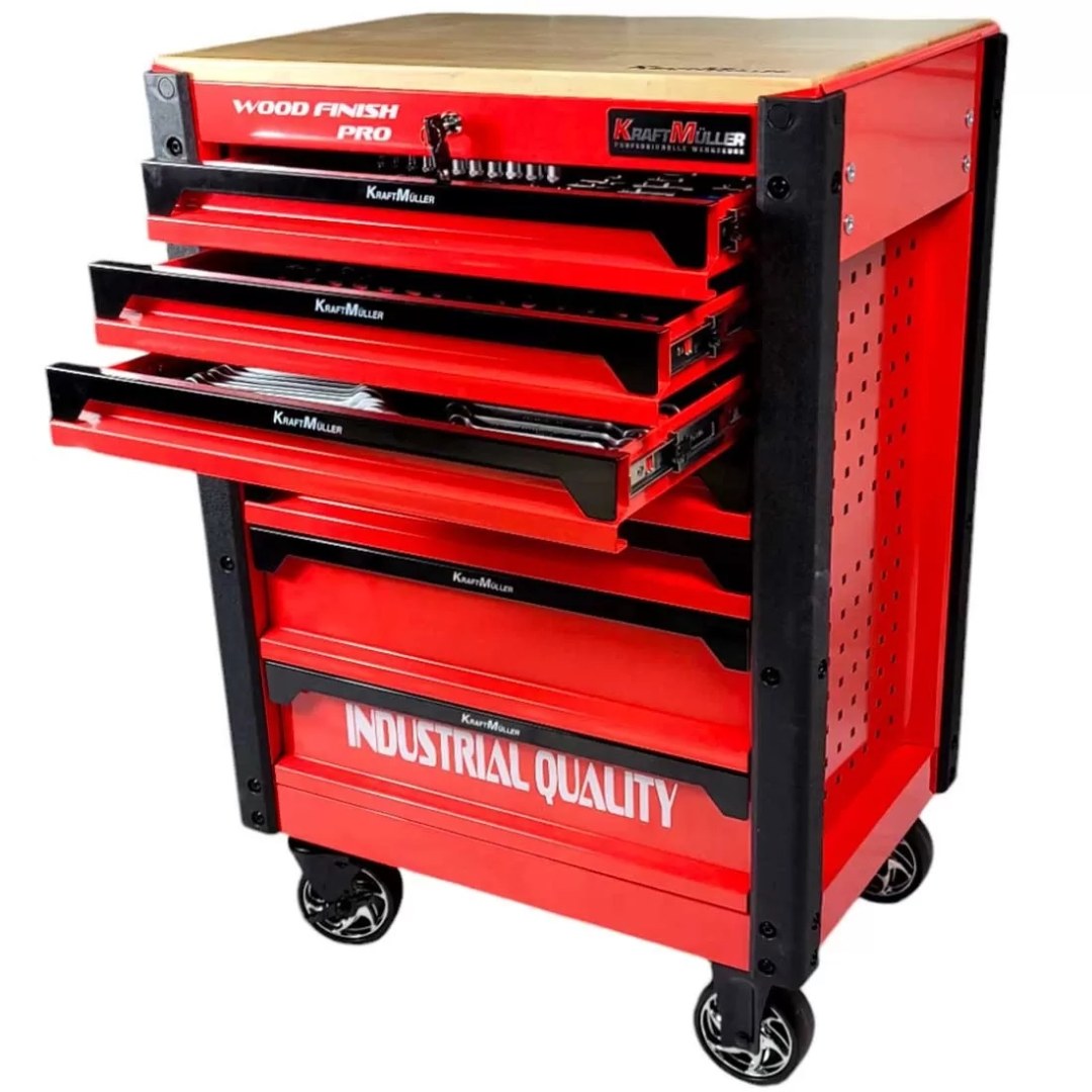 la servante d'atelier KRAFTMULLER avec un plan de travail en bois est conçue pour offrir un rangement pratique et sécurisé pour vos équipements de bricolage. Avec un cadre robuste en acier et un système antibasculement, elle garantit une utilisation en toute sécurité.