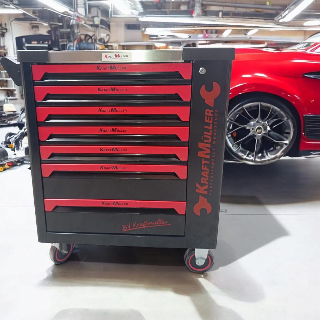 La servante d'atelier 7/7Kraftmuller est un modèle de servante d'atelier complète, conçue pour offrir une solution de rangement d'outils professionnelle et organisée. Dispose d'un système de fermeture centralisée à clé pour sécuriser le contenu.