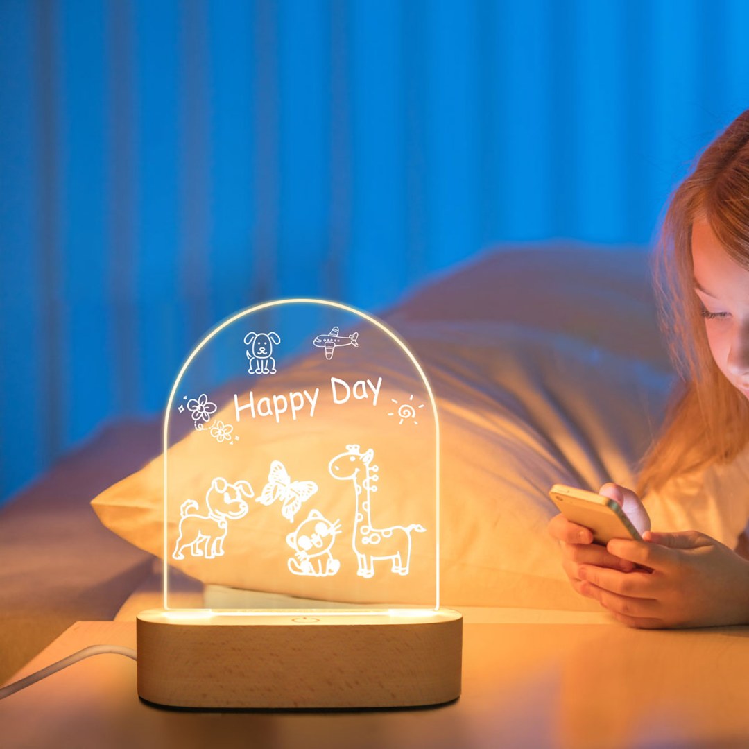 Lot de lampes veilleuses LED enfants – Base bois & gravure lumineuse – Cadeau idéal pou...