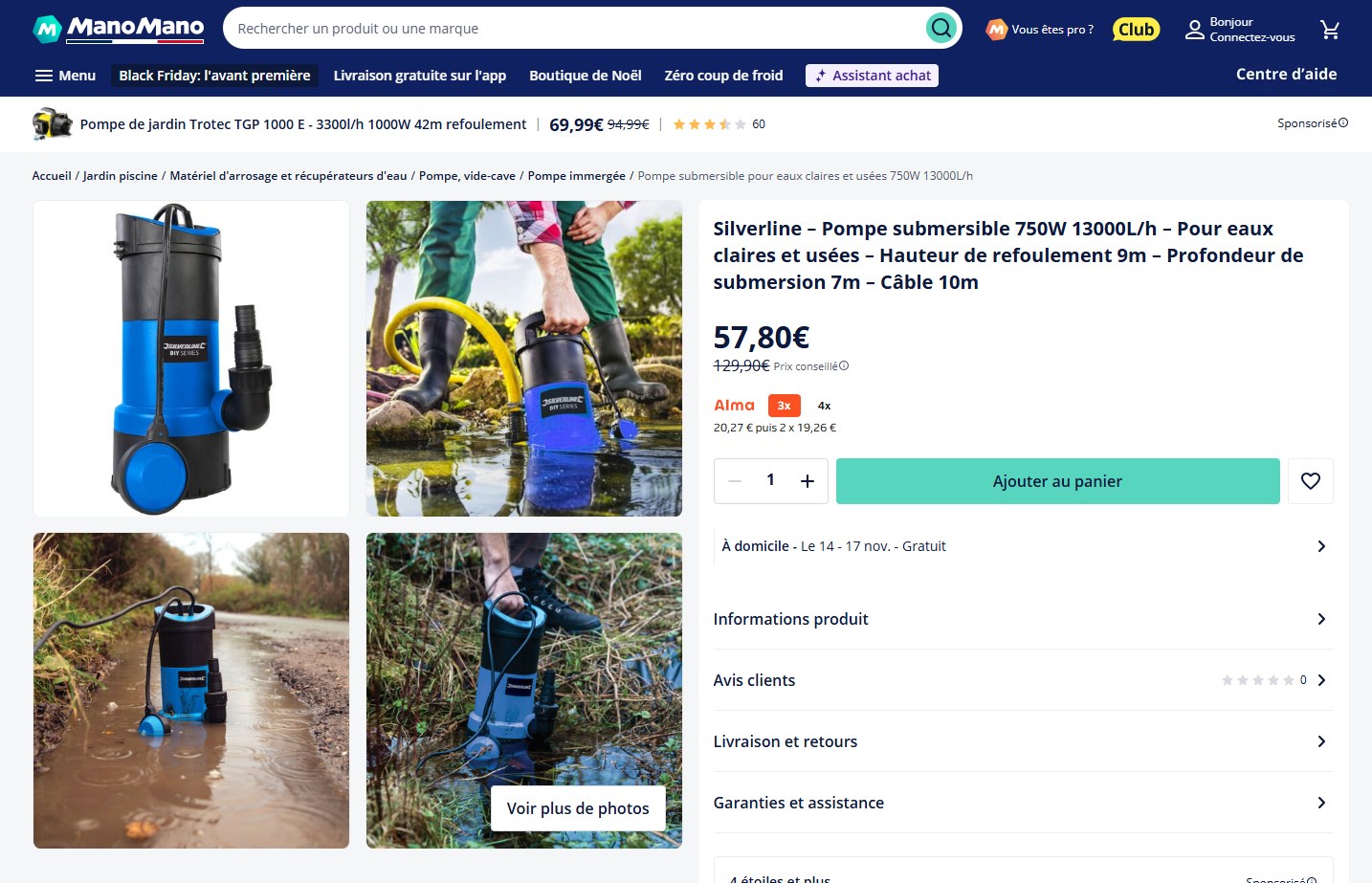Destockage Pompe à eau Silverline 750W pour eau propre et eau sale