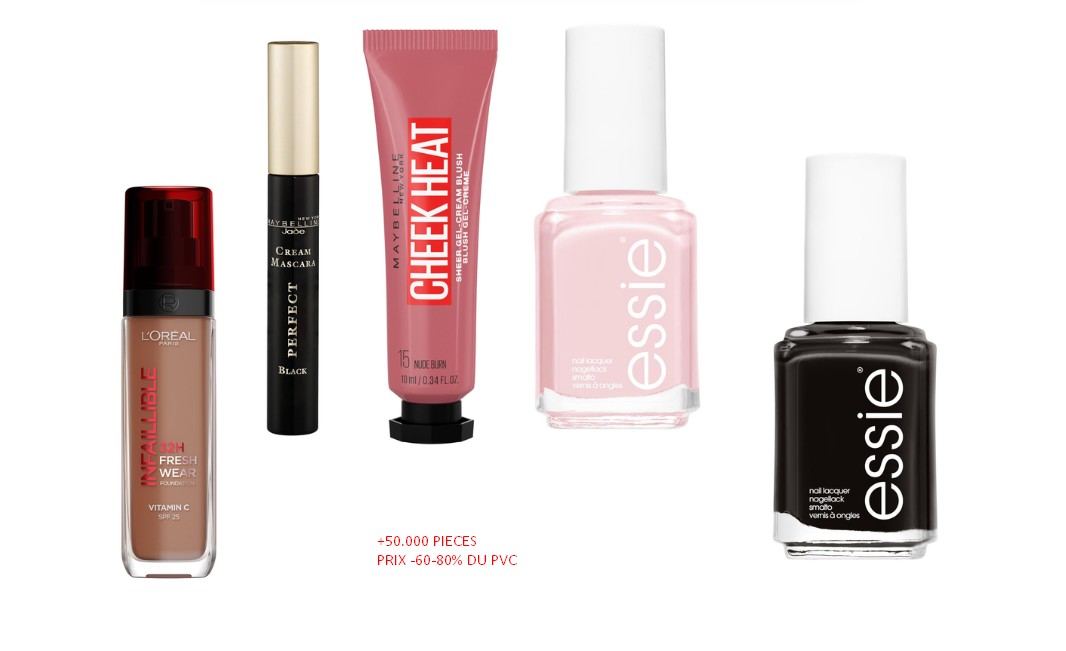 Nous vendons actuellement un lot complet de produit de chez L'Oréal avec les marques ( Maybelline, Essie, L'Oreal Paris ).