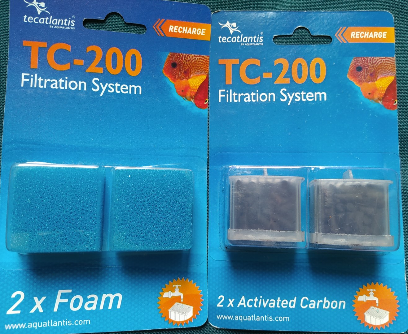 11 PACKS DE 2 FILTRES MOUSSE NEUFS SOUS BLISTER TC-200 TECATLANTIS ET 11 PACKS DE 2 FILTRES CHARBON ACTIF NEUFS SOUS BLISTER TC-200 TECATLANTIS POUR POMPE à AQUARIUM.