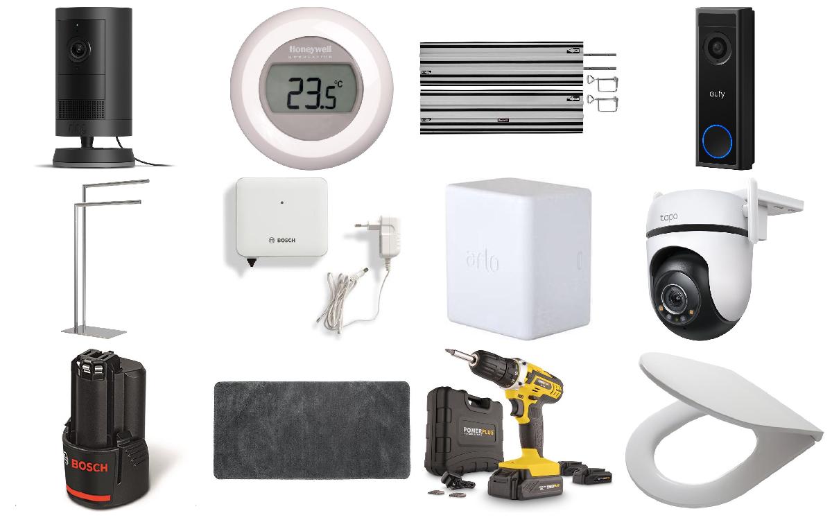 Le lot comprend plusieurs marques renommées telles que **Tiger**, **TP-Link**, **Nuki**, et **Sealskin**.