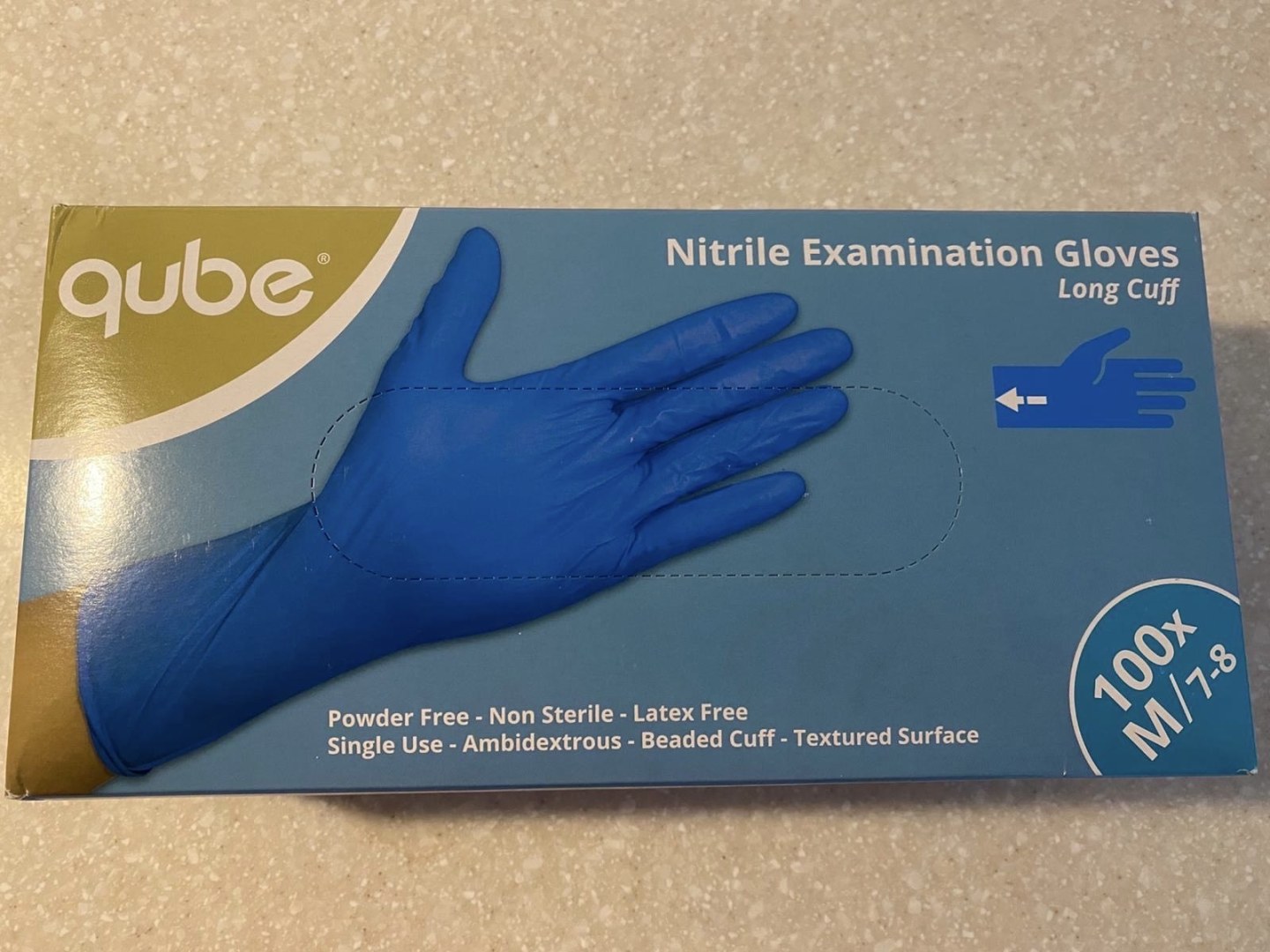 Gants en nitrile sans poudre, manchette longue