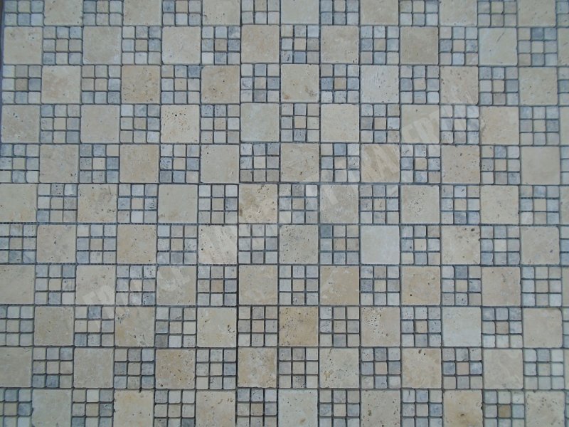 Travertin Beige - Silver Mosaïque Modèle Monaco