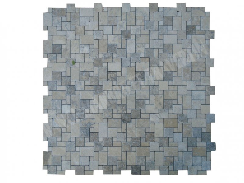 Travertin Silver Mosaïque Modelé Opus Romain