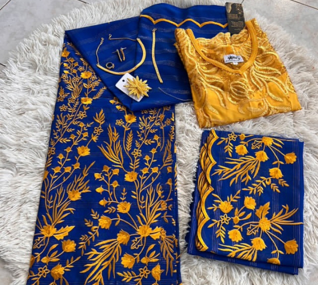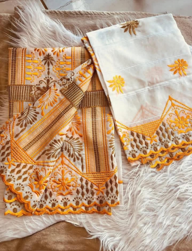 jolies tissus megaline broderie a des prix forfaitaires. Salouva 2 pièces a 30€ , salouva 3 pièces a 60€. Prix usine.