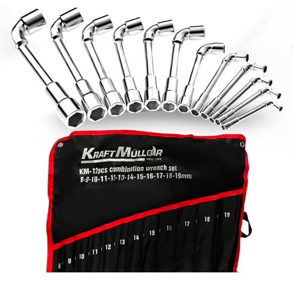 JEU DE CLES COMBINEES PIPE KM-12PCS 8MM A 19 MM KM-4000