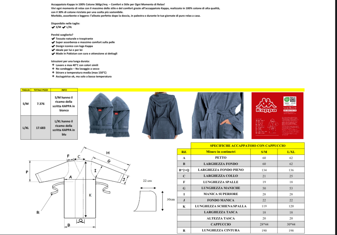 Peignoir, kappa très belle qualité disponible jusqu'à 10 000 peignoirs.