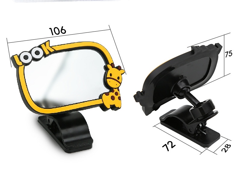 Miroir d'observation bébé pour voiture 3R, accessoire essentiel pour surveiller votre enfant en toute sécurité pendant les trajets. Conçu avec un design cartoon girafe jaune et noir ludique et attrayant, il se distingue par son aspect mignon et tendance, parfait pour personnaliser l'intérieur de votre véhicule.