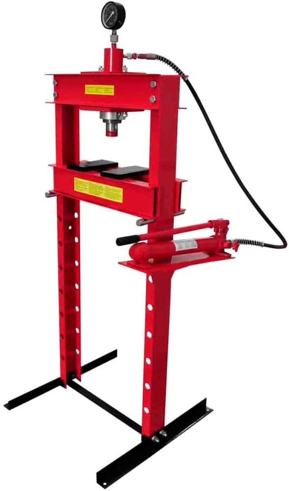 Cette presse d'atelier KRAFTMULLER avec manomètre et une capacité de 20 tonnes est le support idéal dans les domaines de l'artisanat, de l'aménagement paysager et du jardinage, dans l'industrie et dans l'agriculture. La presse est l'outil parfait lorsqu'il s'agit de presser, d'estamper, de plier et de presser divers matériaux. La construction du cadre solide est en acier et boulonnée. La table de presse, y compris les mâchoires d'appui, est réglable avec peu d'effort - Travail :