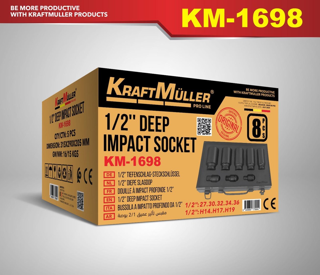 coffret de douilles longues KRAFTMULLER 8PCS 1/2 à choc.