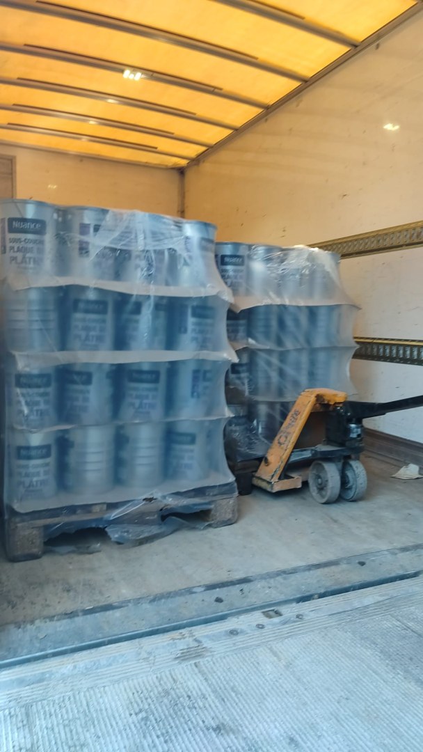 Lot de 2440 pots de 10 Litre de Peinture acrylique sous-couche de la marque Nuance, conçue pour les plaques de plâtre, fournie en lot de 28 palettes. * Type de produit : sous-couche acrylique * Destination : plaques de plâtre * Conditionnement : lot de 28 palettes * Utilisation recommandée : chantiers et revente * Public cible : professionnels du bâtiment Ce produit s'adresse spécifiquement aux utilisateurs exigeant des quantités adaptées à une utilisation intensive sur chantier.