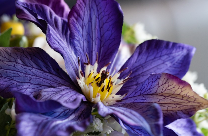 Fleurs violettes en polyester, très réalistes. Diam. de la fleur 14 cm