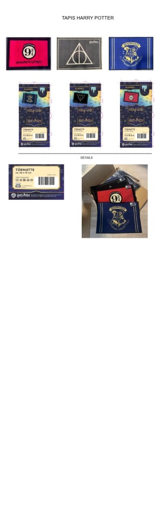 Cette page concerne les Fournisseurs et Grossistes de Tapis de sol marque Harry Potter Rechercher dans la catégorie : Décoration / Objets Rechercher dans la catégorie : harry, potter, marque, tapis |