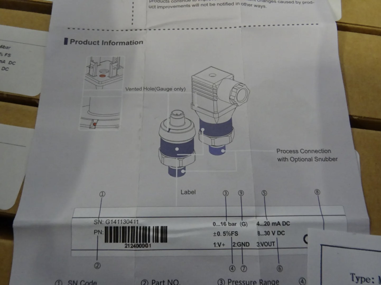 Type : Capteur de pression industriel