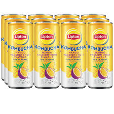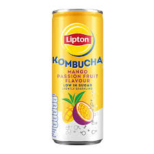 Lipton Kombucha Manga & Maracujá 250 ml : une boisson rafraîchissante au goût exotique de mangue et fruit de la passion. Légèrement pétillante, faible en sucre.