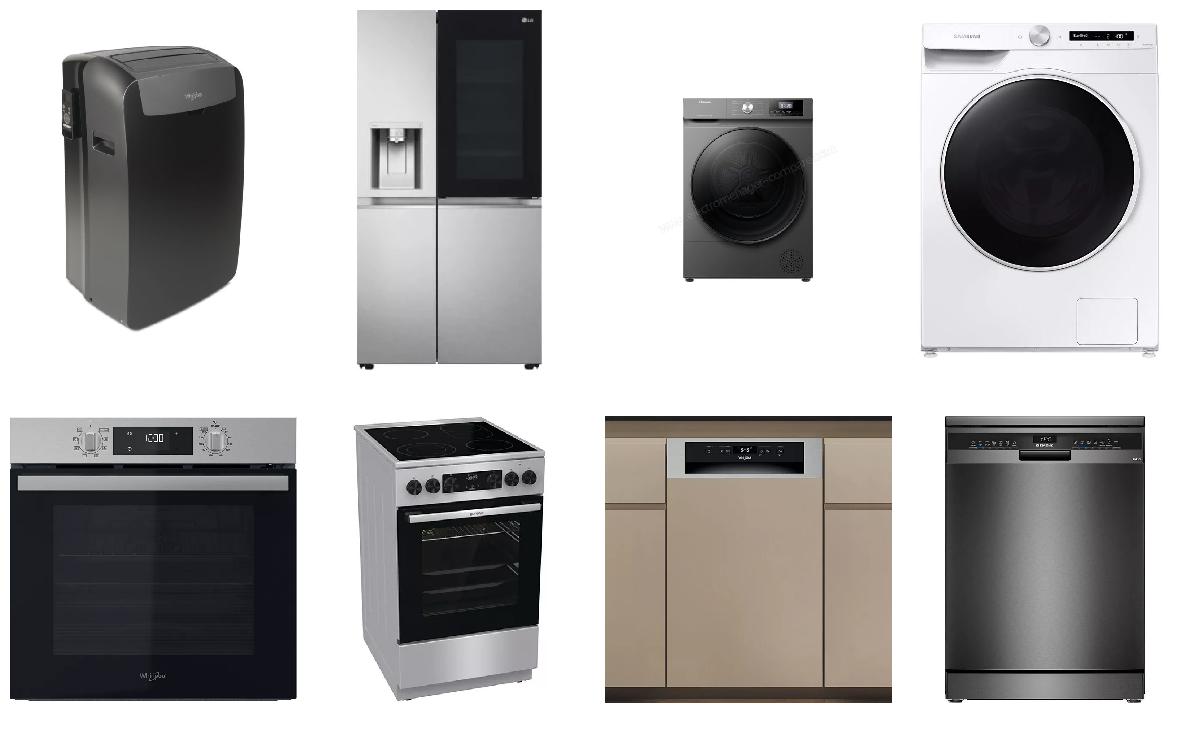 Ce lot comprend divers produits de gros électroménager (*GEM*), comprenant des marques réputées telles que Whirlpool, LG, Siemens, Gorenje et Hisense.