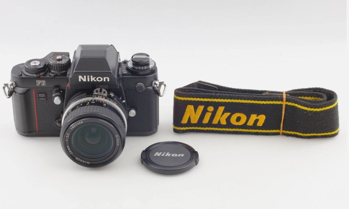 Nikon F3 Eye Level 35mm SLR Film Camera Body 28mm F3.5 Lens