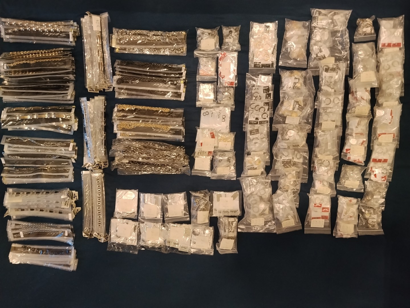 Lot de 720 bijoux neufs sous blister d'origine, Marque Spikes, en acier inoxydable, ou tungstène ou titane : bagues, bracelets, boucles d'oreille, colliers, pendentifs.