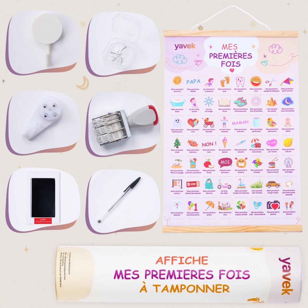 Cadeau Naissance - Affiche Mes Premières fois à Tamponner - Grand Format et Marque Fran...