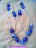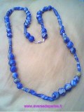Sautoir artisanal confectionné en pâte polymère de couleurs bleu clair et foncé , bleu turquoise , transparent et des pastilles noires ainsi que des perles et des pampilles en argent tibétain monté sur cordon bleu turquoise maintenu par un crochet. "Bijou unique" Longueur totale ...