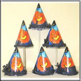 Chapeaux pointus en cartons tête de citrouille + franges noires tout autour - 6 pièces dans un sachet transparent Dimension : 17 cm Localisation : 18 Rue du Moulin, 67550 Vendenheim, Personne à contacter : Jonathan Voltzenlogel, 03 69 26 19 24
