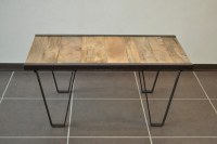 Table à manger industrielle acier et bois Un esprit loft très marqué pour cette table à manger industrielle, alliance de bois et de l'acier et du manguier lui confère un style authentique très actuel, les angles renforcés par des cornières rivetées soutiennent un solide plateau aux...