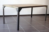 Table à manger industrielle acier et bois Un esprit loft très marqué pour cette table à manger industrielle, alliance de bois et de l'acier et du manguier lui confère un style authentique très actuel, Les angles renforcés par des cornières rivetées soutiennent un solide plateau...