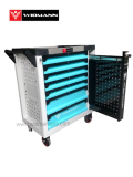 SERVANTE D'ATELIER RACING AVEC 7 TIROIRS REMPLIS D'OUTILLAGES AVEC DECO MOTO BLEU + CLE DYNAMOMETRIQUE Grâce à sa poignée ergonomique intégrée dans le plan de travail et ses roulettes avec frein promenez là partout dans votre atelier et ayez toujours l'outil qu'il vous faut. Accédez...