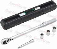VENTE EN GROS ET SEMI GROS!!!! Clé dynamométrique kraftmuller à cliquet réversible avec entrainement 1/2", double échelle de graduation et 24 dents PRÉCISION : grande précision de déclenchement, avec tolérance de ± 4%. Pour un travail avec un couple compris entre 42 et 210 Nm ou 31...