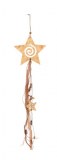 Deux étoiles en bois empilé ornées de jolis motifs ciselés de fleurs dorées font danser des reflets de lumière doucement dans la pièce! Des découpages de spirale et des perles sur rubans de chanvre ainsi que des rubans en gaze et des clochettes en laiton tintant doucement complètent...