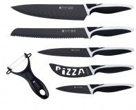 - COFFRET DE COUTEAUX 6 PIECES Revetement céramique - - - - COULEUR BLACK ou WHITE - - Coffret Contenant : - * 20 Cm Couteau Chef * 20 Cm Couteau à Pain * 20 Cm Couteau à Decouper * 13 Cm Couteau Pizza * 9 Cm Couteau à Eplucher + Econome ( Bonus ) Revetement Céramique Anti-Adhésif ...