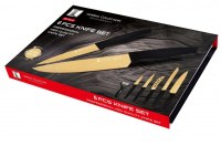 - COFFRET DE COUTEAUX 6 PIECES TITANIUM GOLD - - - - Swiss collection- Royalty Line - Swiss Line - LUX Revetement Ceramique - - - - - Coffret Contenant : * 20 Cm Couteau Chef * 20 Cm Couteau à Pain * 20 Cm Couteau à Decouper * 13 Cm Couteau Utilitaire * 9 Cm Couteau à Eplucher...